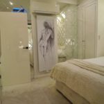 Pionowa obudowa grzejnika ze stali, z naniesion膮 grafik膮.