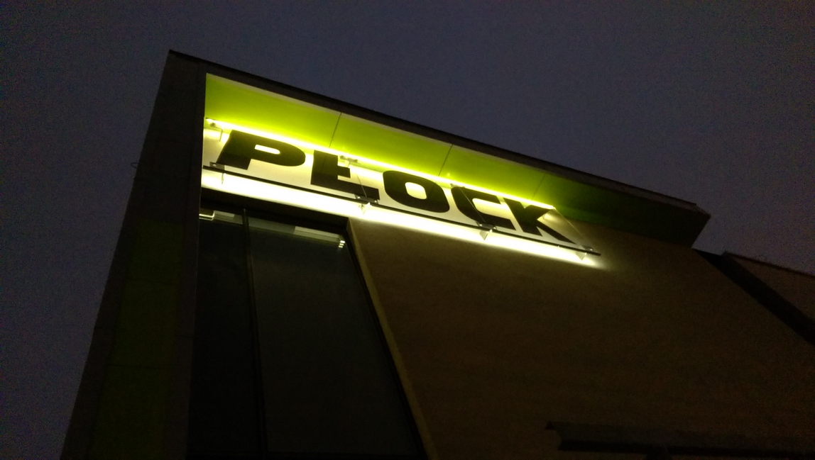 19Wykonanie napisów Płock na czterech elewacjach modernizowanego dworca, oraz oznakowanie kierunkowe wewnętrzne na szkle bezpiecznym. Napisy wykonane pomiędzy dwoma taflami szkła hartowanego które zgrzane w piecu tworzą bezpieczną szybę łączoną. Podświetlenie napisów poprzez światło rozproszone odbite od elewacji (co niestety przy ciemnej elewacji efekt mało wydajny). Jeden napis to waga ok 300 kg.