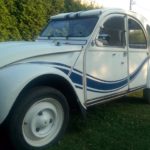 Wyklejenie pojazdu, oryginalnych naklejek z wytw贸rni cz臋艣ci dla aut聽Citroen 2 CV. Oznakowanie wg schematu.